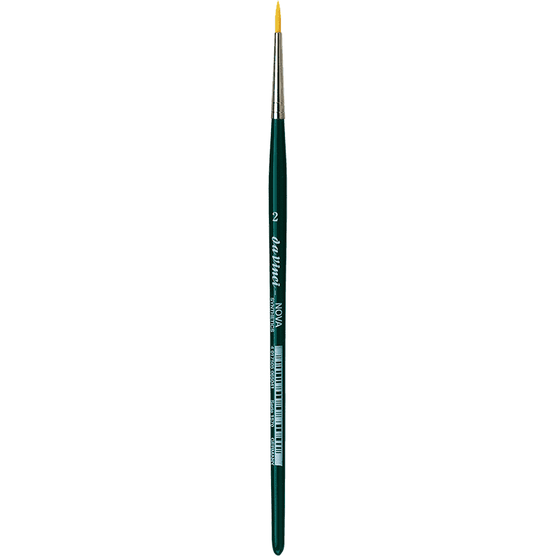Το πινέλο Da Vinci Series 1570 NOVA Στρογγυλό Watercolour είναι ένα ευέλικτο, vegan πινέλο κατασκευασμένο από εξαιρετικές χρυσές συνθετικές ίνες—χειροποίητο με τρεις διαφορετικές διαμέτρους ινών για καλύτερη ικανότητα συγκράτησης χρώματος και διατήρηση κοφτερής άκρης. Τοποθετημένο σε διάφανο ασημί ferrule που δεν σκουριάζει και με κοντή, γυαλιστερή πράσινη ξύλινη λαβή, προσφέρει εξαιρετική ελαστικότητα, ρευστές πινελιές και αντοχή—ιδανικό για watercolours, μελάνι, gouache, τέμπερα και ακόμη και washes με ακρυλικά ή λάδια.